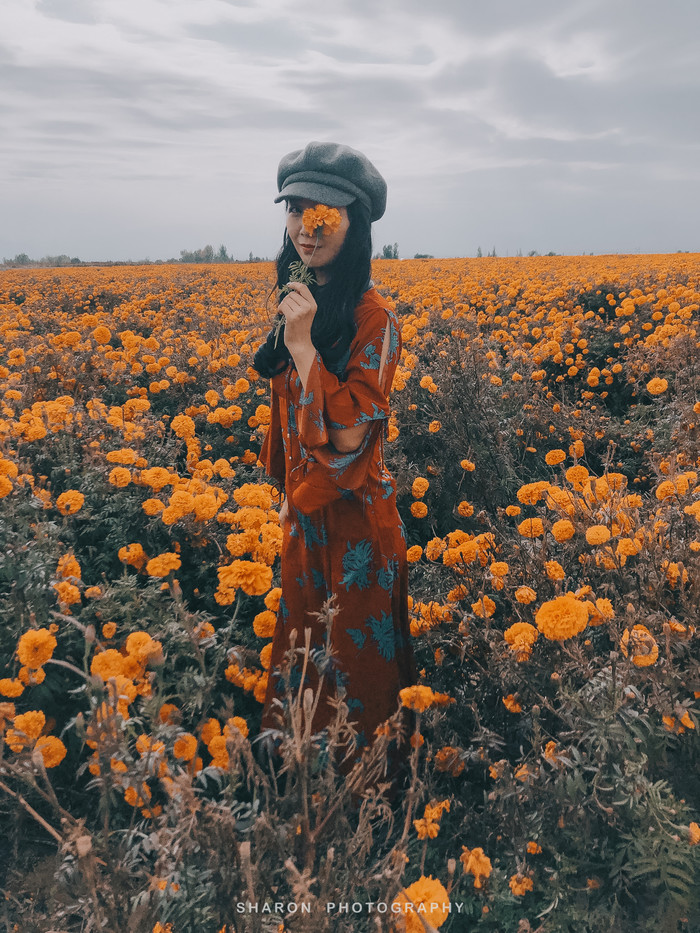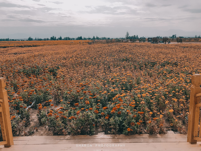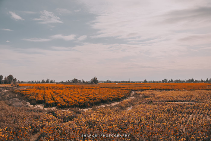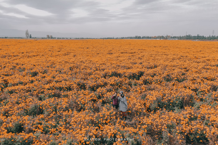 离开祁连草原,行驶在227国道上,竟然在路边发现一片花海,橘灿灿一眼望不到头,踏入其中犹如沐浴在芬芳的花海中一般。