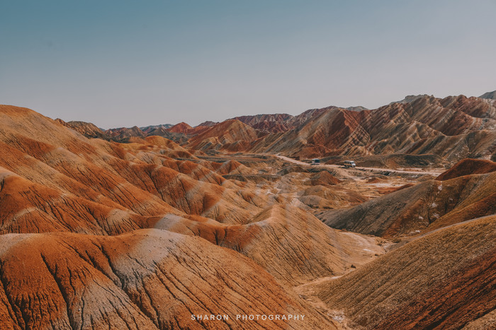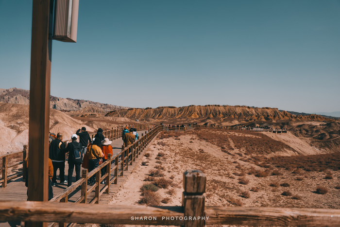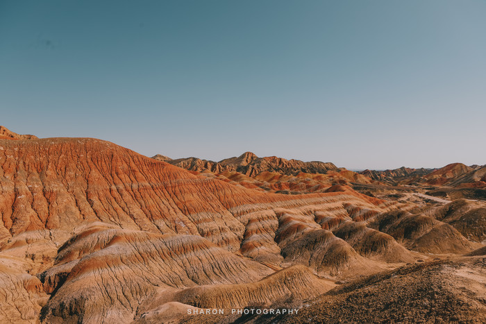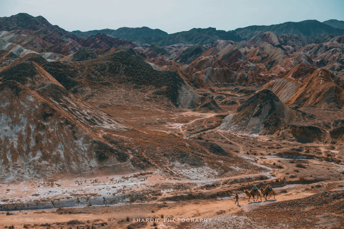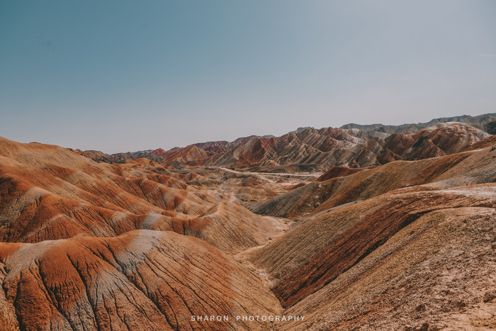 张掖七彩丹霞“上帝的调色盘”,色彩明亮,构造奇异,用再多的赞美之词也不为过。丹霞光影最佳的观赏时间要属清晨和傍晚,尽管我们入园的时候已经10点,正值日头高高挂,却也不影响欣赏到丹霞美景。