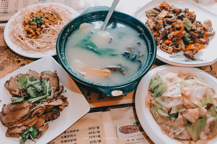 行程时间有限,只能舍弃朋友推荐的《又见敦煌》剧场,既然不用赶场,我们睡了个饱觉,甲了美味的当地早餐,一路高速经过瓜州吃了个瓜,抵达[顺张黄面馆],甲了期待已久的敦煌名吃—驴肉黄面。面确实一般,很快就黏了,倒是其他驴肉的菜肴确实无一踩雷。