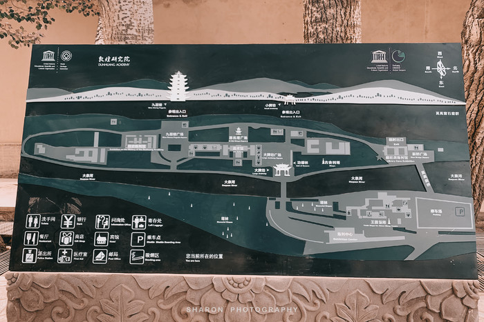 莫高窟位于敦煌市东南25公里处,沿公路向东,左边为农田,右边为戈壁和沙漠,停好车再到入口处排队,B类票好长好长,A类票排队直接进入数字展厅。先是到了个小影院看了《千年莫高窟》,讲述的是丝绸之路和莫高窟的历史,随后转场来到球幕影厅观看球幕电影《梦幻佛宫》,立体式全方位看到洞窟近景,尤其是没有开放的特殊洞窟介绍,不容错过。