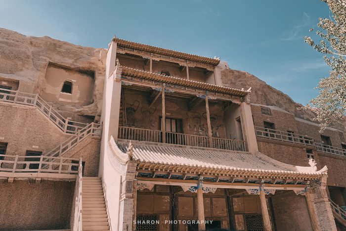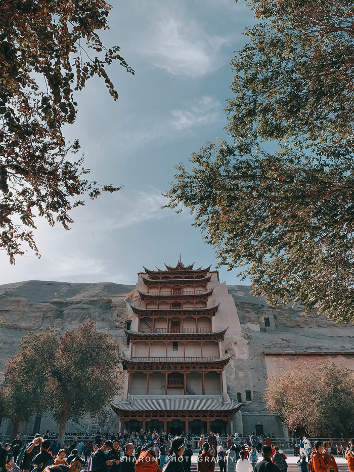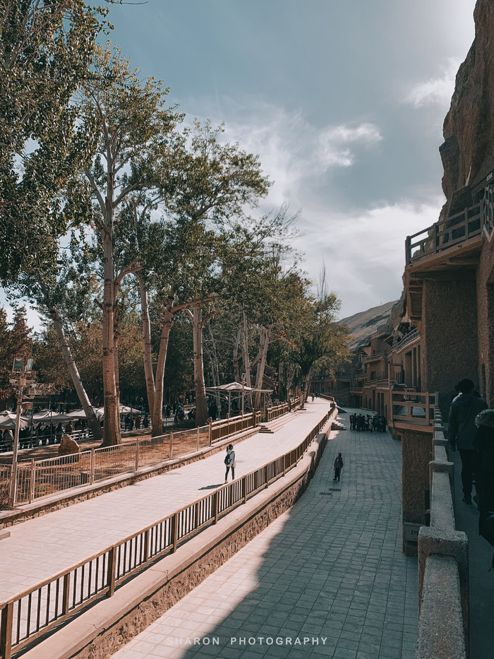 数字展厅门口即是前往莫高窟洞窟的巴士,到达以后走一段路便看到排队,而相对的队伍便是B类票的队伍。A类票很快就被安排了向导,每队20人左右,至于看到哪8个洞窟就看运气了,向导会沿途选择洞窟,如若是热门洞窟门口有其他队伍排队,可能会跳过。