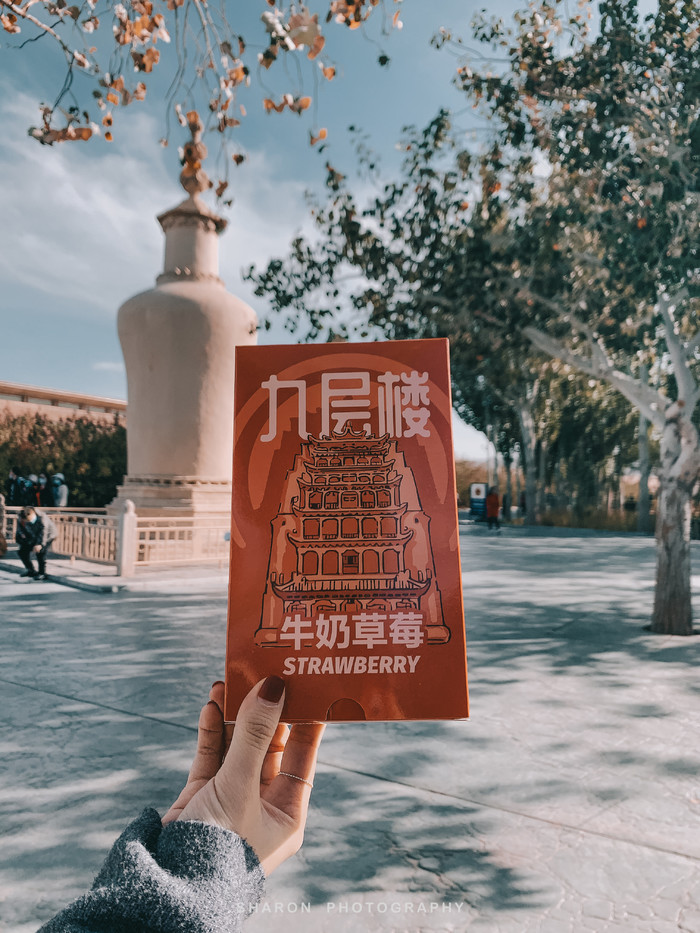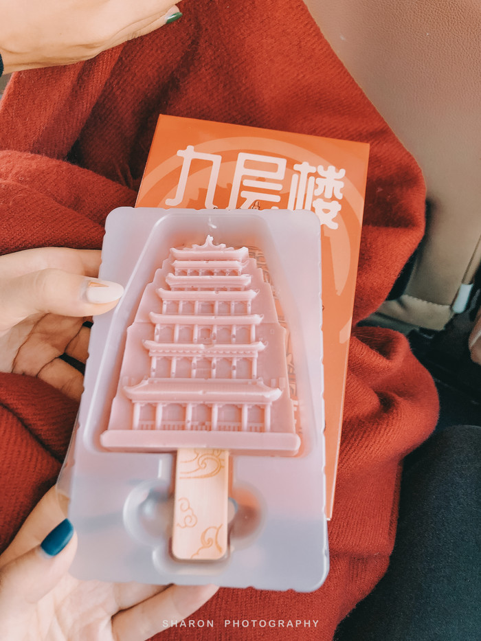 3个多小时的莫高窟之旅基本就此告一段落,听说一路堵车,我们只能放弃博物馆,最后在九层塔拍了几张照片,快速的买了个昂贵的九层塔雪糕就飞奔至停车场。