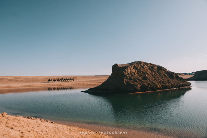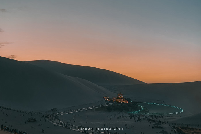 直至日头落山,灯光逐渐亮起,映衬下的月牙泉纤尘不染,尤为亮眼。