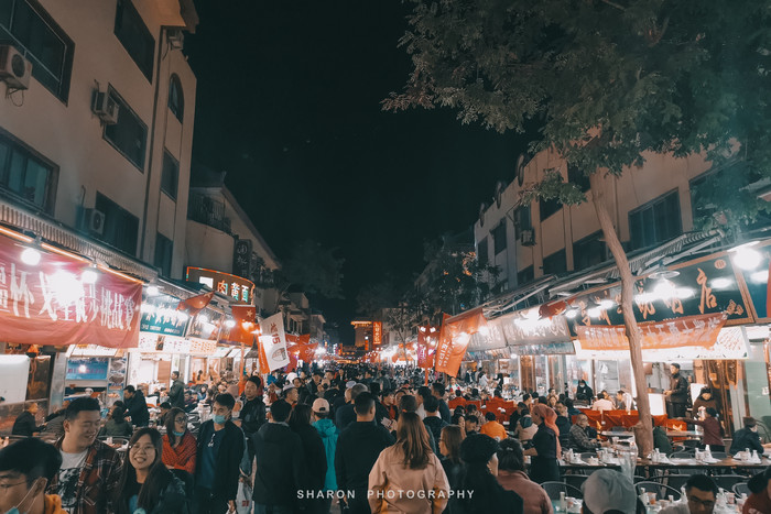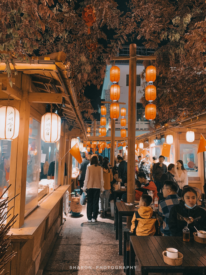 下一站,也是疲劳爬山后最期待的[沙洲夜市],进入敦煌夜市后两侧尽是餐厅,热闹非凡,不知道如何选择。一直走到[沙洲食驿],这里同样是吃货聚集地,各色小吃排满了长队,非常适合游客。