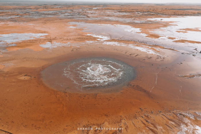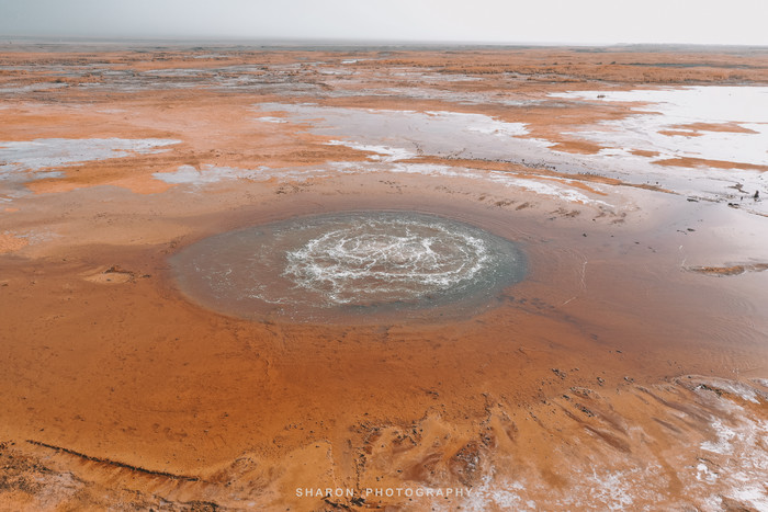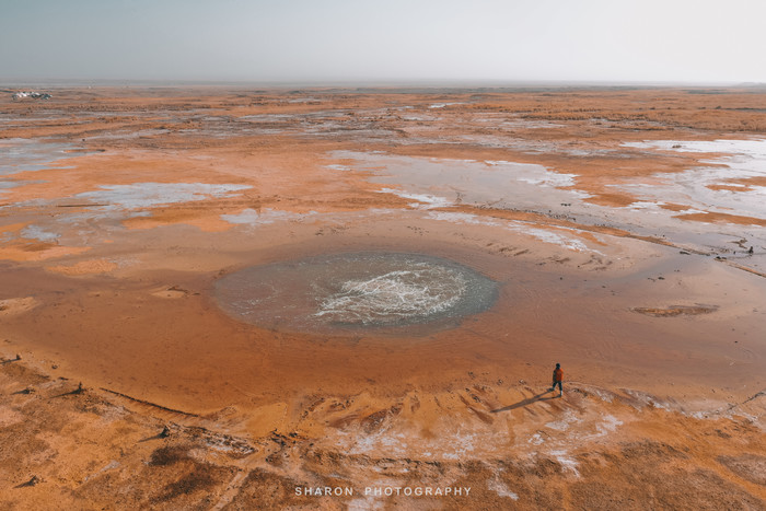 转眼路程已过一大半,迎来了最期待的一天,艾肯泉和茫崖翡翠湖。一早绕着土路前往艾肯泉,果真是个未开发景点,看到了大西北的荒凉,全都是坑坑洼洼的泥土路,一路上前往的车辆还不计其数,真的是个啃爹的景点。尽管如此,进入停车场的时候还收了门票,所谓的高台花了20元基本啥也看不到,还是得用无人机才能一览艾肯泉的奇景。