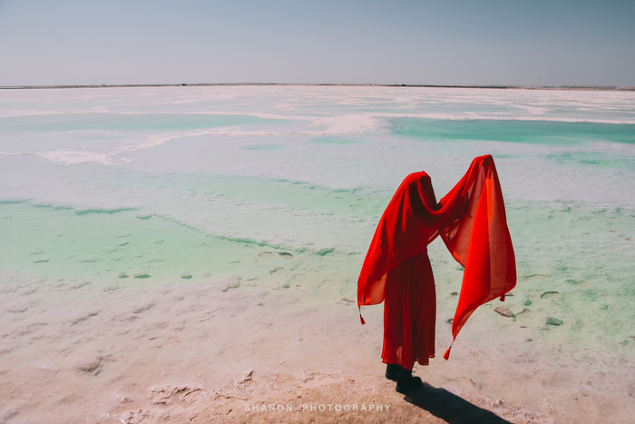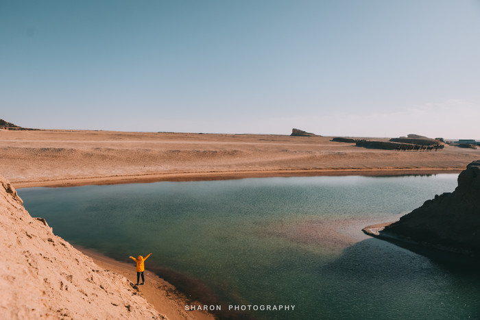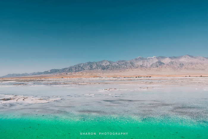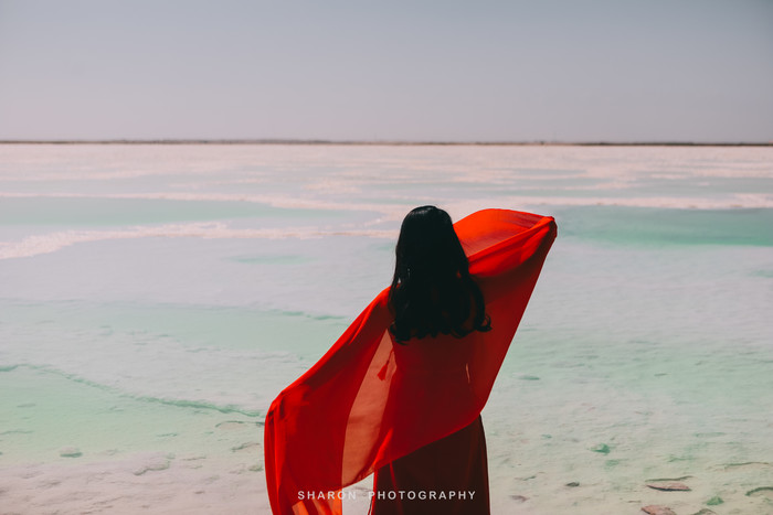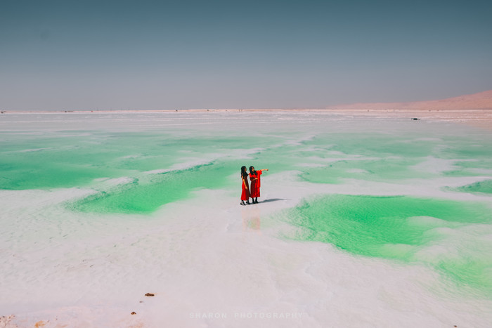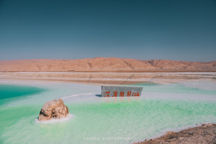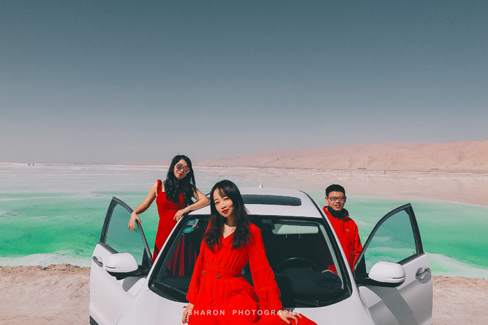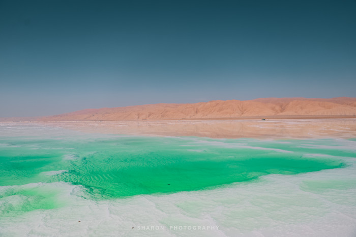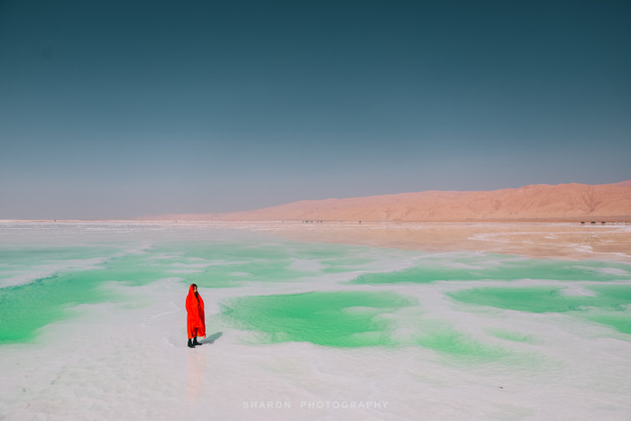离开艾肯泉还需要继续行驶50多公里才能到达茫崖翡翠湖,但是堪忧的路况整整走了好几个小时,恰好抵达翡翠湖的时候正是正午高阳时分,湖水因光线通过湖中矿物质反射后形成,拢呈现出纯净的翠绿色,如同镶嵌在戈壁上的翠玉,让人心旷神怡,脱掉外套,我们也要做最靓的小仙女。