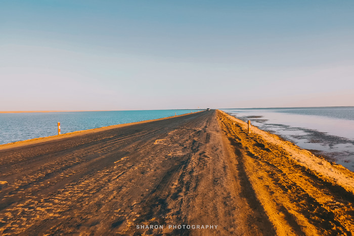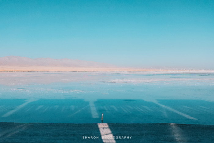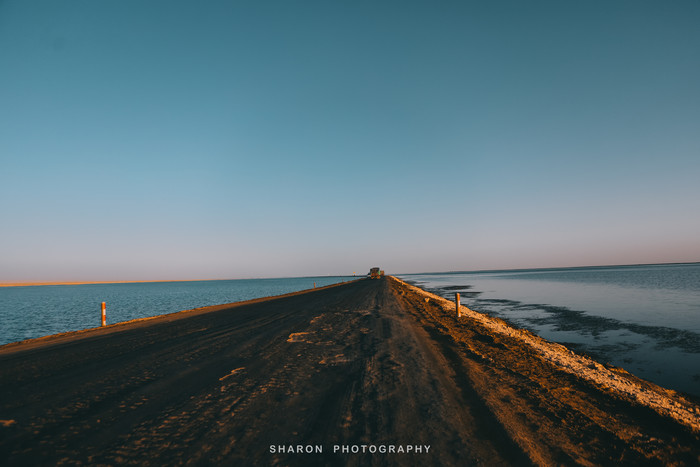 西台吉乃尔湖人称“双色湖”,公路两旁的湖水呈不同的色彩,我们抵达的时候已临近太阳落山,尽管景色未及落日及晚霞时刻,却呈现出一幅犹如“落雁与孤鹜齐飞 秋水共长天一色”的美景。残酷的是,我们并没有及时预定到昂贵的水上雅丹房车,只能住在西台边上的小旅馆,应该要属有史以来最艰苦的环境了吧。