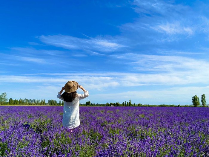 下午5点到达伊犁霍城四宫村解忧公主薰衣草农场!记住是农场!门票35,进去之后最好坐20块往返的电瓶车,真的超级晒!坐车到最远处有小山坡的地方拍照
