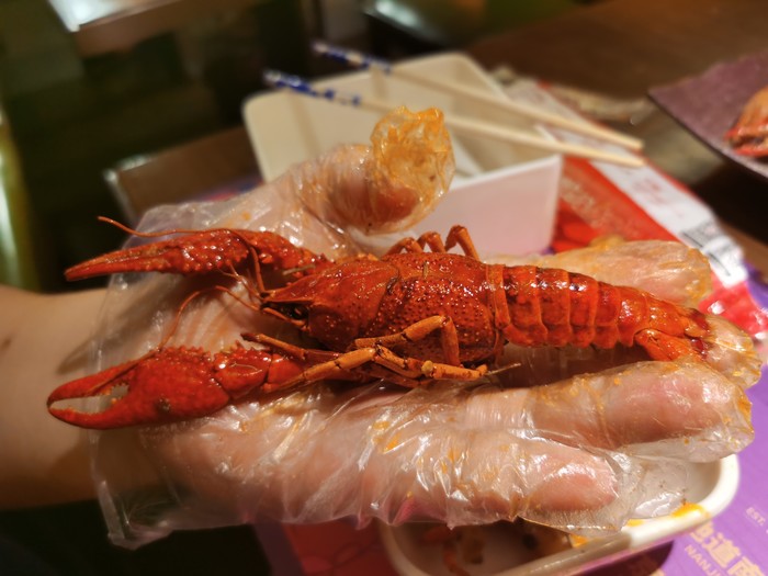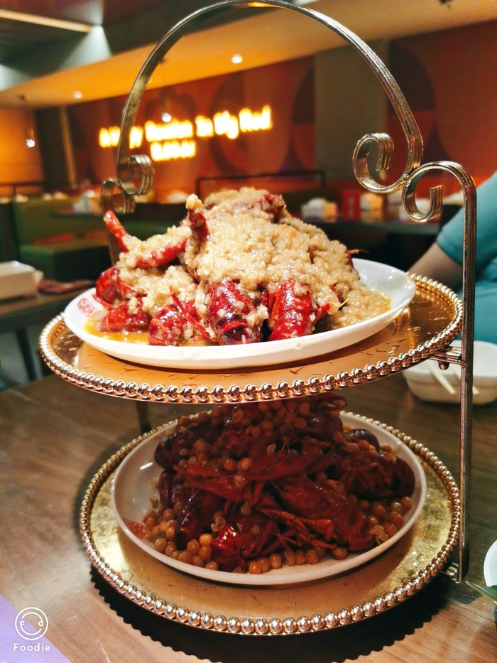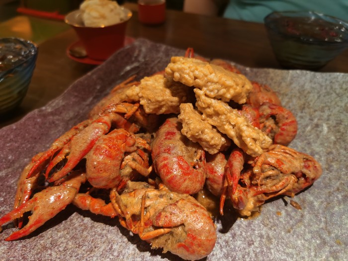 第三站,是今天的重头戏,从重庆出发的前一天就已经开始心心念念,红大龙虾,我来了!点了最喜欢的抖唇,蒜泥,蛋黄三种小龙虾,口味很稳定,还是那么棒,没让我失望,赞!还点了一个特别的女儿红姜撞奶冰淇淋,将一小杯女儿红淋在冰淇淋上,冰淇淋里铺满了炒米,一口下去,冰淇淋混合着女儿红的醇香和脆香的炒米,口感丰富极了。