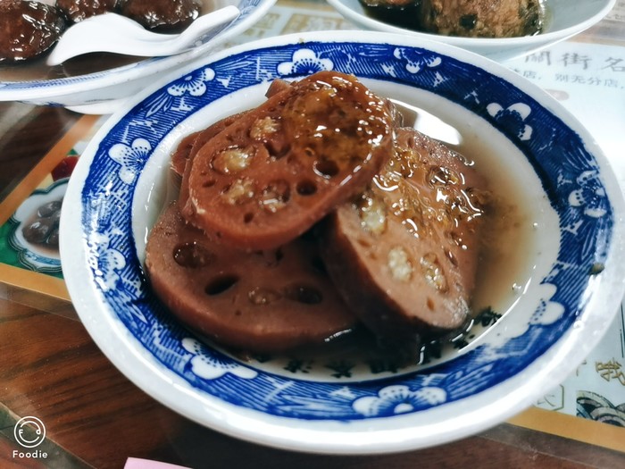 第一站,粗茶淡饭,一家黑珍珠一钻餐厅店面不大,排位的人很多,一般都是拼桌。特色藕粉圆子、狮子头、藕饼、酒酿圆子、扬州炒饭