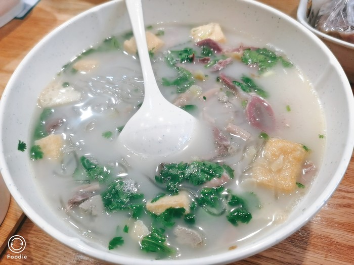 ️,放下行李,在两位谈谈的陪伴下,立马开始复刻之前的美好回忆。第一站,李记牛肉锅贴,招牌变了,但味道依旧。打上一个仅有醋和辣椒的蘸碟即可。锅贴的外皮酥脆,里面满满的牛肉馅,汁水丰富,一口下去,小心烫嘴呦!第二站,鸭德堡老鸭粉丝汤,之前是朋友介绍来吃过一次,记忆深刻。两年后再次回味,仍然还是那么让人流连忘返。全套老鸭粉丝鸭血汤份量十足,我们三个人点了一份,内容十分丰富,鸭汤浓郁色白,粉丝不黏不硬,混合着脆脆的鸭肠和鸭肫、嫩嫩的鸭血、榨菜、豆腐果子再配上些许灵魂香菜恰到好处,再点个鸭腿,配上一份大四喜,就是汤包和烧卖,绝了!