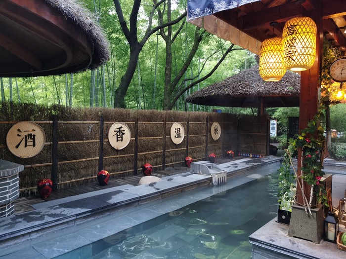 御水温泉是稀缺的碳酸氢钙温泉。有52个泡池,去的当天开放了38个。在前台办理好手续后会给你一个手环,里面的消费通通记在手环里,出来统一结算。加料区有红酒池,百合池,薰衣草池,红茶池,绿茶池,竹汁池,按摩池,桃花池等,艾灸池的鸡蛋和茶适时的补充着体力,鱼疗池和矿沙池需要另外付费。还有网红酒香池和竹尖温泉。每一个区域都有一位阿姨负责,帮你挂好浴巾,摆放好拖鞋,帮你倒上各种茶。感受很好,上午爬山的疲惫感通通消散。