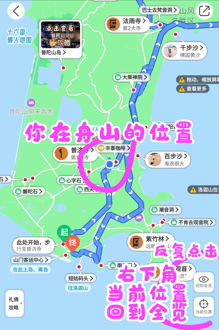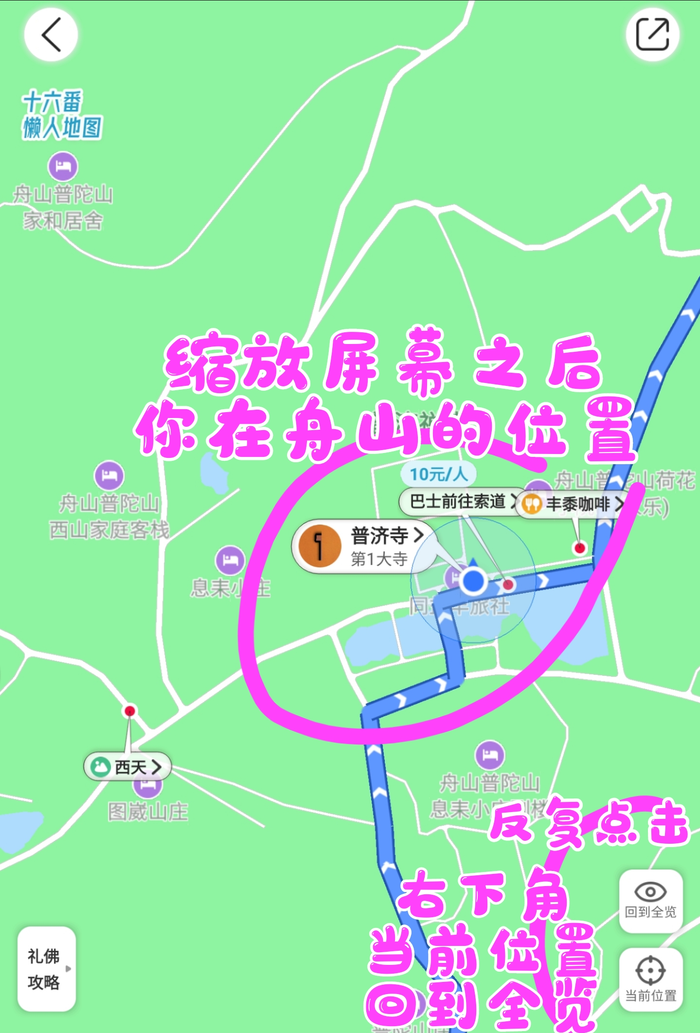 第2步:点击右下角“当前位置”,显示你在舟山的位置。