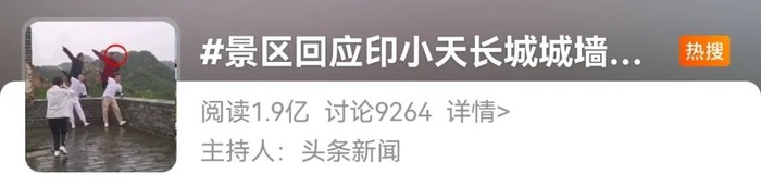 景区回应印小天长城城墙上跳舞:已经制止,绝不允许