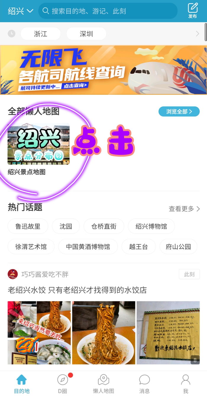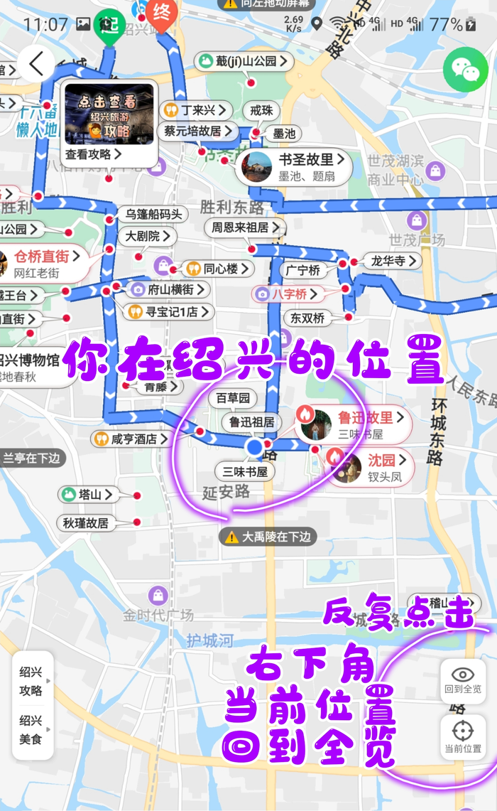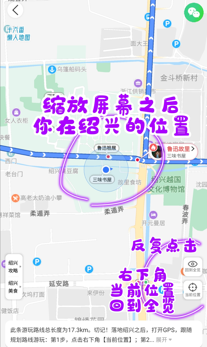 第2步:点击右下角“当前位置”,显示你在绍兴的位置。