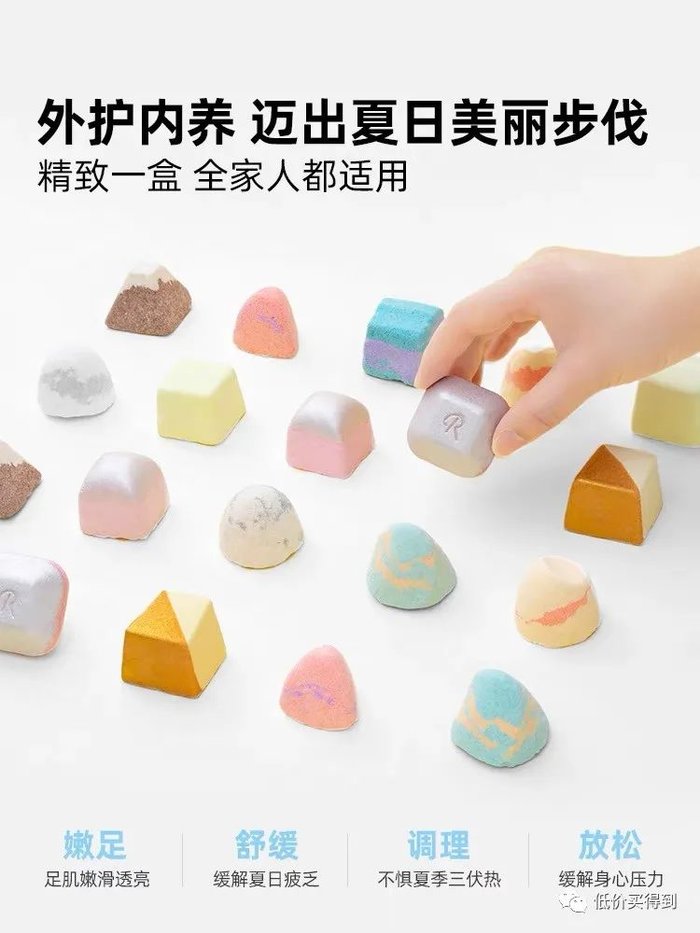 这款颜值超高,外型像巧克力一般,10颗外型都不一样,礼盒装送人也合适!而且还配有一个便携式足浴桶,出门游玩/出差都能带上。