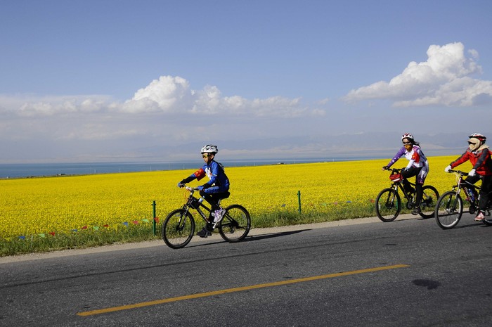 青海,已经成为骑单车旅游的最佳旅游地,骑车出行,一路草原、花海、湖泊相伴,完全融入美丽的大自然,尤其青海的公路,也成为一道靓丽的风景。最重要的不是我们以环保、怀旧、有益健康等貌似道德精神标准的条条框框约束了自己,当我们骑车穿越每一个风景优美的地方,我们想得到的,跟想在理想的爱情中取走的东西一样——那种无所忌讳的、自由的、简单的快乐。