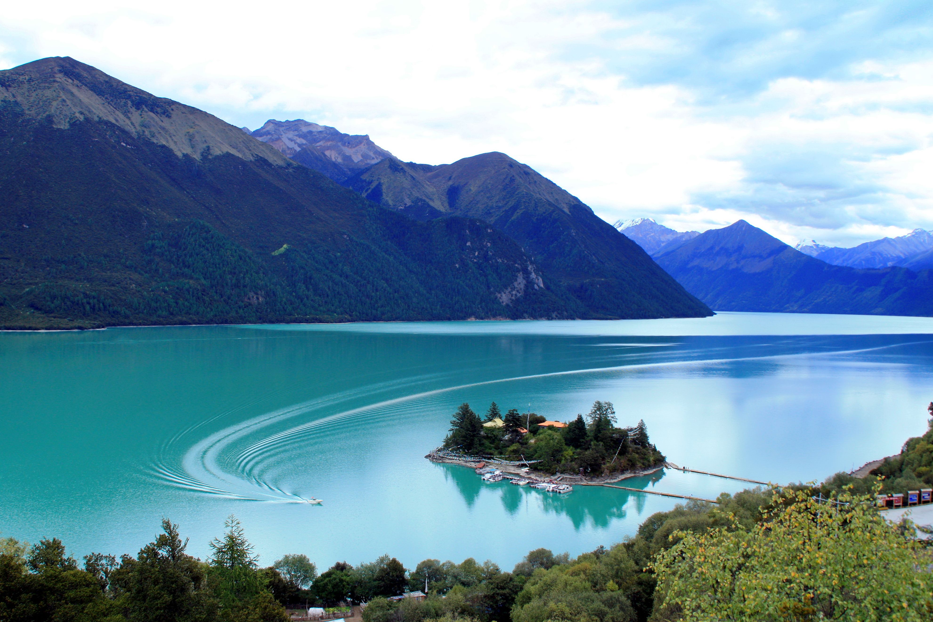 第九天:林芝—巴松措—色季拉山口—拉萨河—拉萨不同于西藏其他的神湖,巴松措(又名措高湖,藏语意为“三岩三湖”)完全被郁郁葱葱的原始森林所包围。确实如它的名字般,巴松措是绿色的,是那种淡淡的玉石般没有杂质的绿色。湖水清澈得可以看见两三米下成群游动的鱼儿。四周青山如黛,顶峰是终年不化的积雪。湖边的雪山和湖面倒映的雪山彼此纠缠着,连绵不绝,很是壮观!最难得的是,现在还很少有人到这里,完全一副与世隔绝的模样。