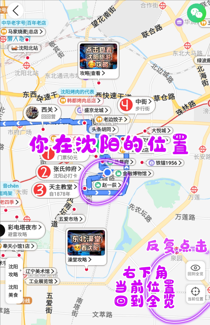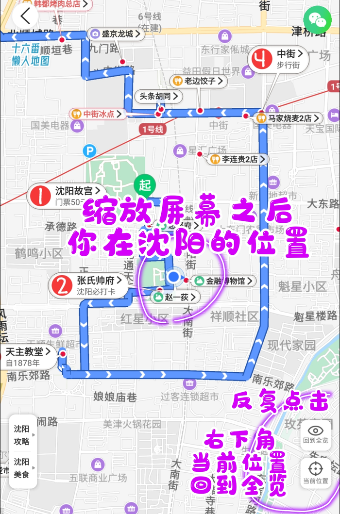 第2步:点击右下角“当前位置”,显示你在沈阳的位置。