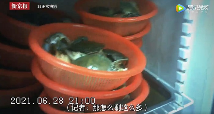 “以后剩啥东西了,别说,要装不知道。领导不让说,因为不能让客人知道是剩的。”6月底开始,@新京报 记者先后卧底进入北京两家由胖哥俩直接管理的合营门店,揭露“食材新鲜”背后的种种乱象:承诺现杀的活蟹,其实是前一天已经宰杀好的“隔夜蟹”;过期、变质的土豆简单加工后继续送上餐桌;提前煮熟的肉品,即使变味儿也会留到第二天继续卖;500g一份的肉蟹煲,店家授意只给430g…