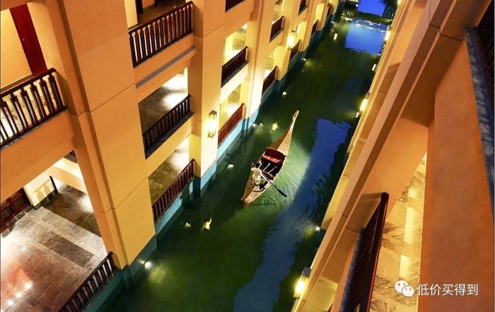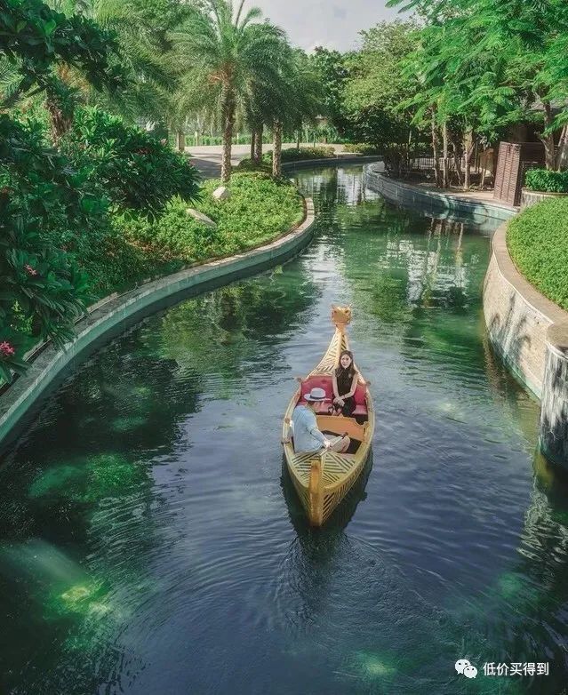 先说最大的亮点,1200米的海水韵河环绕酒店建筑群之间,住客可乘龙舟划水游览,感受一把水上威尼斯风情,全三亚仅此能体验。