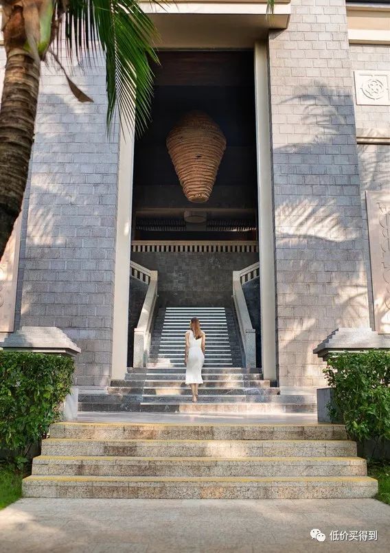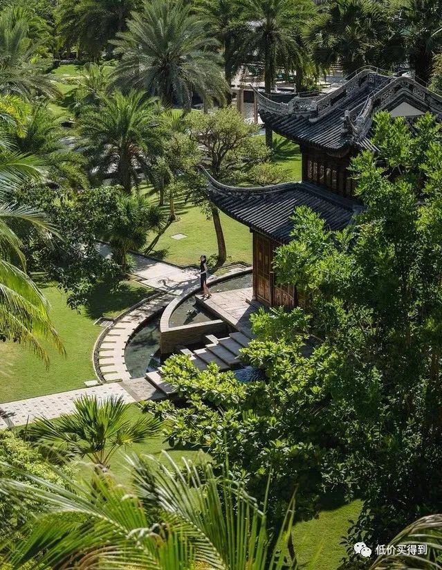 酒店大手笔把光绪年间的对亭 、老上海的石库门等等搬了进来,酒店大厅的九重穹顶也是历经数年雕刻而成,江南风情融入进热带园林中。