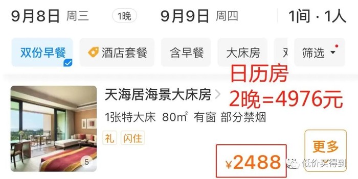 日历房2晚需4976元,套餐2晚仅3999元,立省977元!