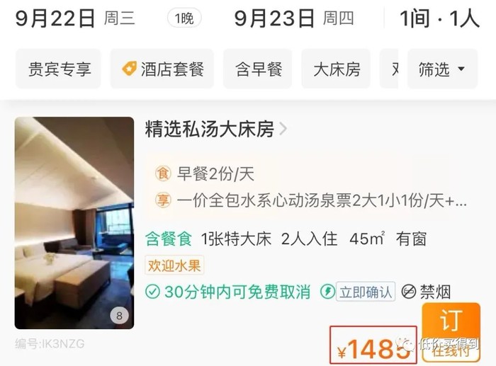 目前日历房给出的一晚含早含汤池票需1485元,套餐只包含住宿和早餐,按照¥188/1大1小的门票来看,算下来套餐还是要划算一些的!