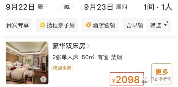 日历房一晚2098元,套餐一晚1688元,便宜了410元。