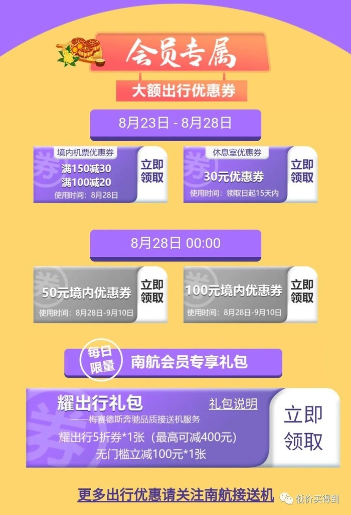 8.28是南航会员日,目前活动页面已上线,可在南航APP、南航官网看到。