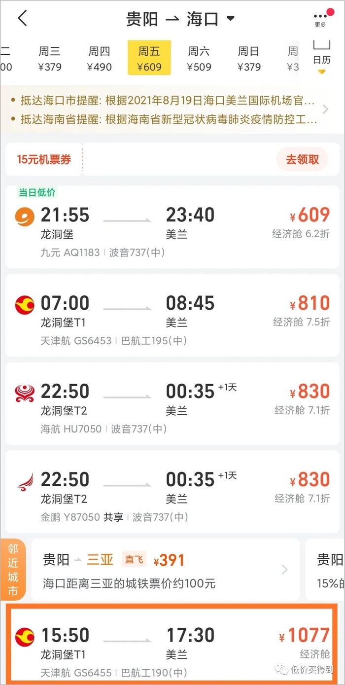 贵阳飞海口单程,9.3出发,秒杀价299元,航班时间很好,下午15:50贵阳出发,17:30到达海口。