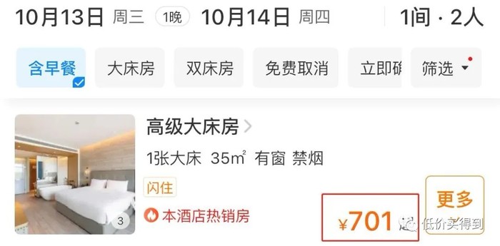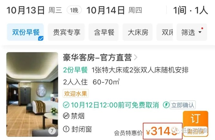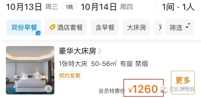 日历房一晚1260元,套餐一晚999元,便宜了261元。