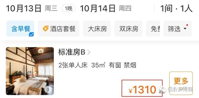 像乌镇望津里酒店平时一晚需1310元,套餐999元就能搞定,便宜了311元。