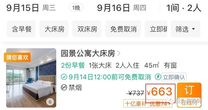 日历房一晚含早663元,套餐一晚含早仅499元,便宜了164元,约等于7.5折的优惠。