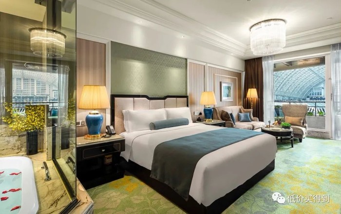 套餐:联排别墅套房2晚连住(含2大1小早餐)+采蝶轩双人港式下午茶套餐1份+酒店旅拍一次1份+欢迎饮品券1份+酒店至免税店穿梭巴士1份=899元