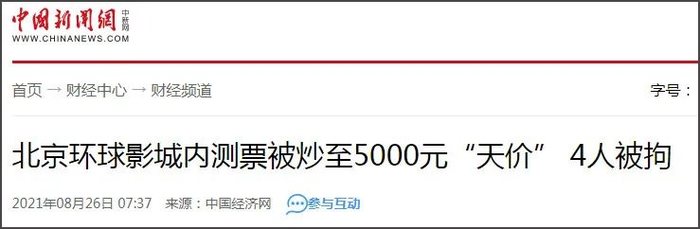 8月24日,北京环球度假区宣布将于9月1日开启试运营。基于疫情防控要求,北京环球度假区将在每日限流的基础上推进试运行测试和演练工作,试运营期间仅向受邀客人开放。尽管北京环球影城方面提示,内部测试并未向公众销售任何门票,消费者在市场上购买所谓的“体验票”“内部票”或“预售票”均存在风险。但记者发现,仍有部分所谓环球影城的“内测票”已被炒至“天价”。
