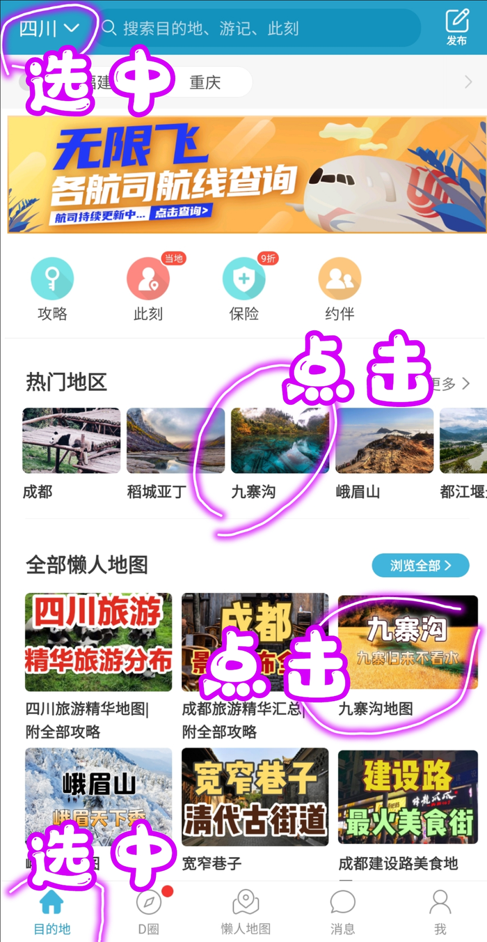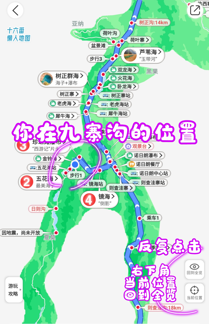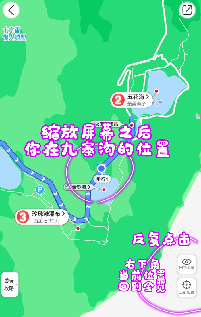 第2步:点击右下角“当前位置”,显示你在“九寨沟”的位置。