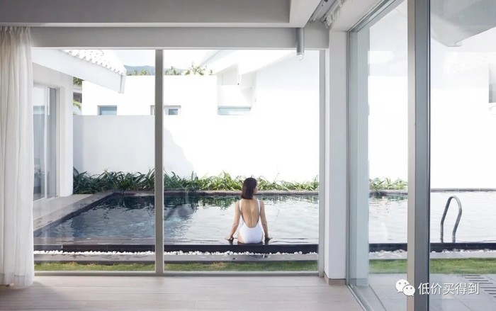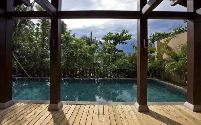 这个是两居室泳池别墅,450㎡的面积,同样带私家泳池和按摩泡池,多人出行选它准没错。