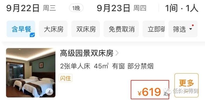 平时预订一晚需619元,套餐一晚仅399元,便宜了220元,打了64折。