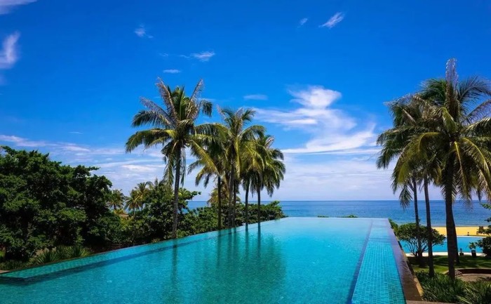 酒店由中国知名设计师陈厚夫设计,拥有700米的私家沙滩及88米的海景无边泳池。