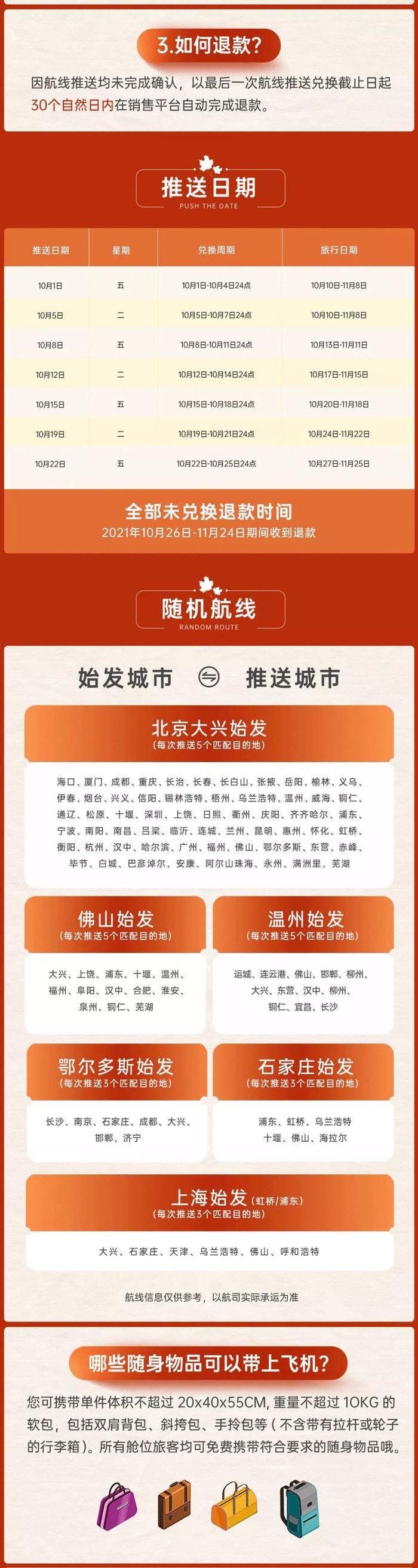 从10.1起,每周五、周二更新目的地,每次更新目的地的兑换周期、旅行日期如下: