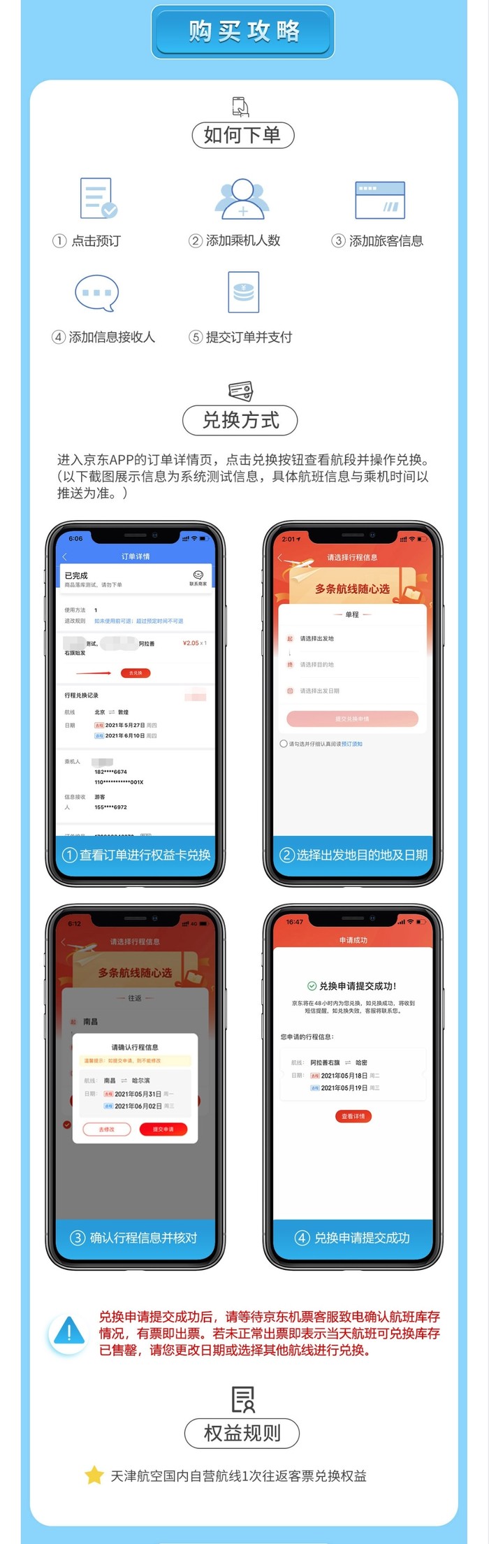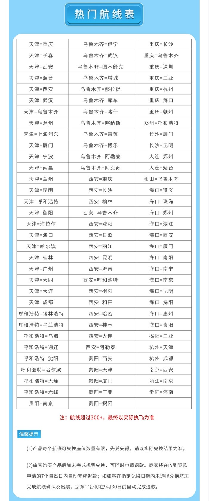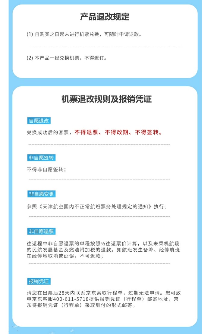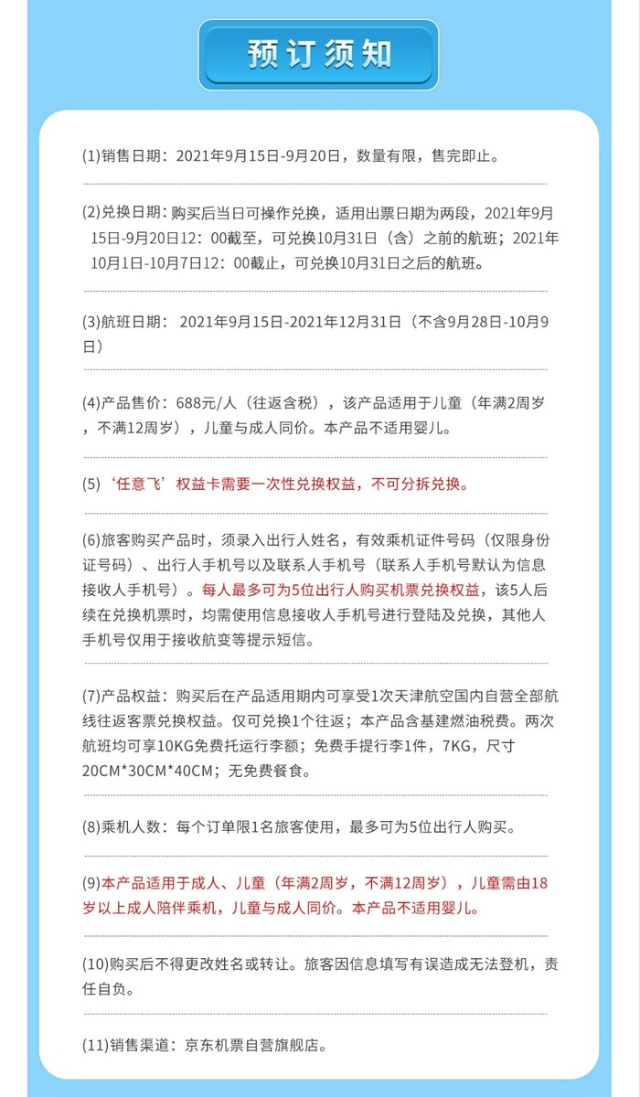 适用航线:天津航空国内自营全部航线。