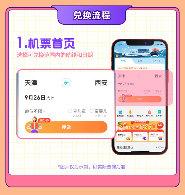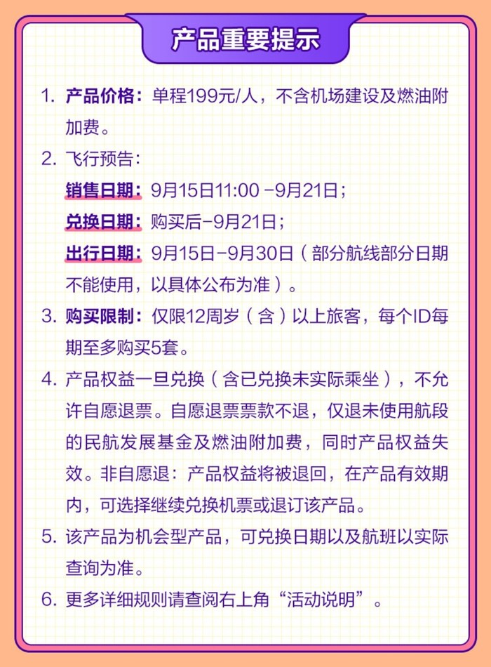 出行时间:9.15-9.30(部分日期部分航线可能无票可兑)