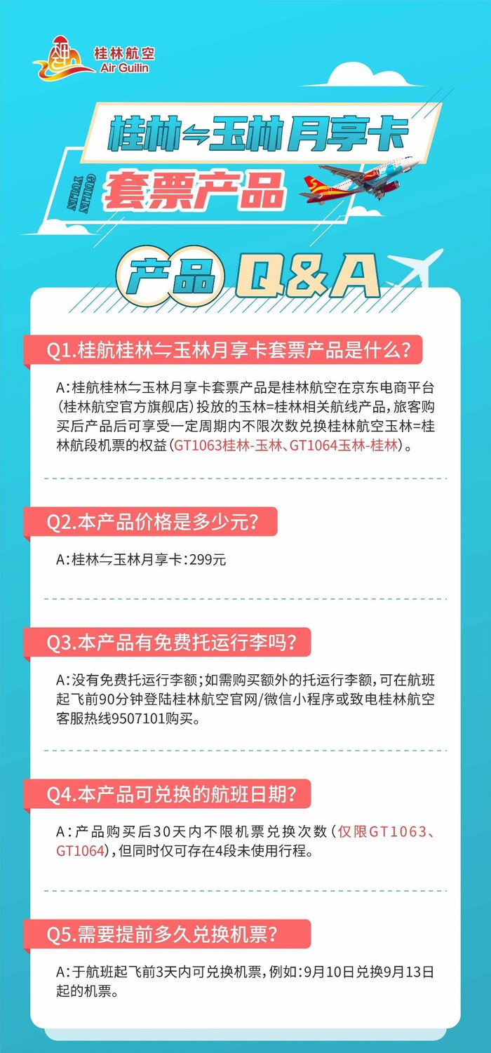 即日起,桂林航空 “ 桂林⇋玉林月享卡 ” 正式发售!价格299元。