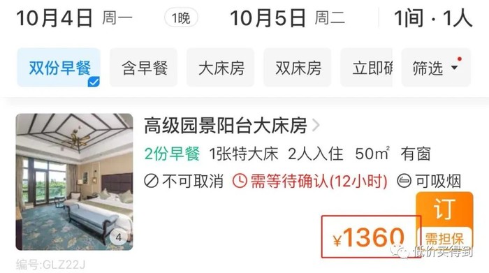 由于太火,这个房型国庆期间已经满房啦。不过还是推荐大家囤,毕竟超长有效期,平时来个周末游什么的,这个价格也不错。