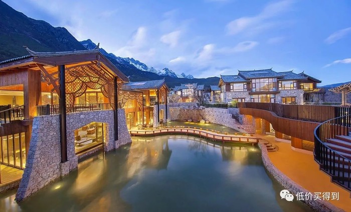 酒店坐落于玉龙雪山脚下,到丽江周遭景点车程都是半小时内。酒店建筑是传统的纳西族风格,曾获得多项酒店设计奖项,随便一拍就是一幅画!