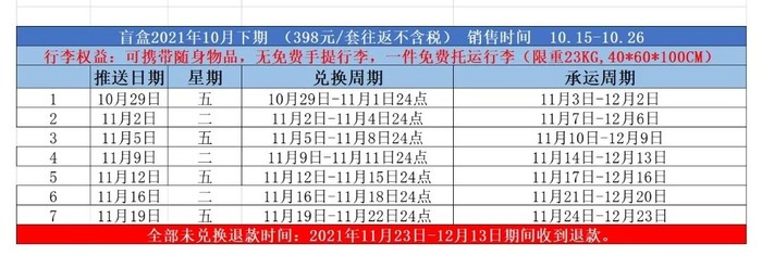 最后预告一下,中联航“盲盒飞行家”下一期销售时间应该在10.15-10.26,对应出行时间大范围是 11.3-12.23。