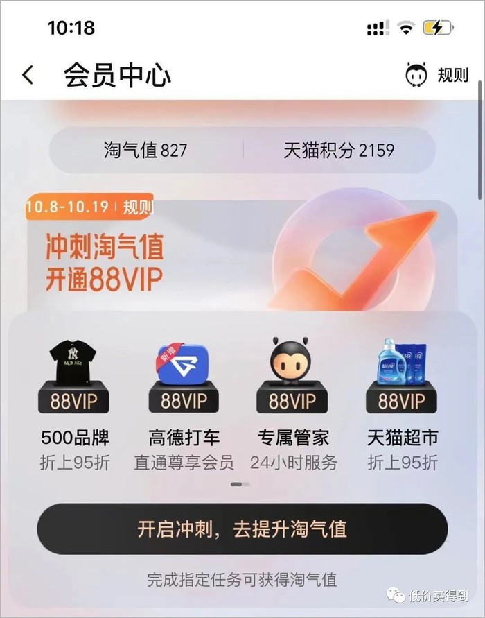 淘气值在800~999分的用户,可以参与会员中心的“冲刺淘气值,开通88VIP”活动,冲刺成功后可以享受88元开通88VIP资格。