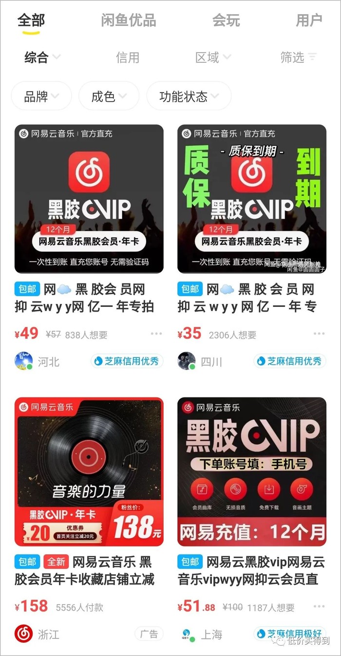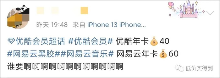 分享一些网上卖这些年卡的价格,供大家参考(截图来自微博、闲鱼):