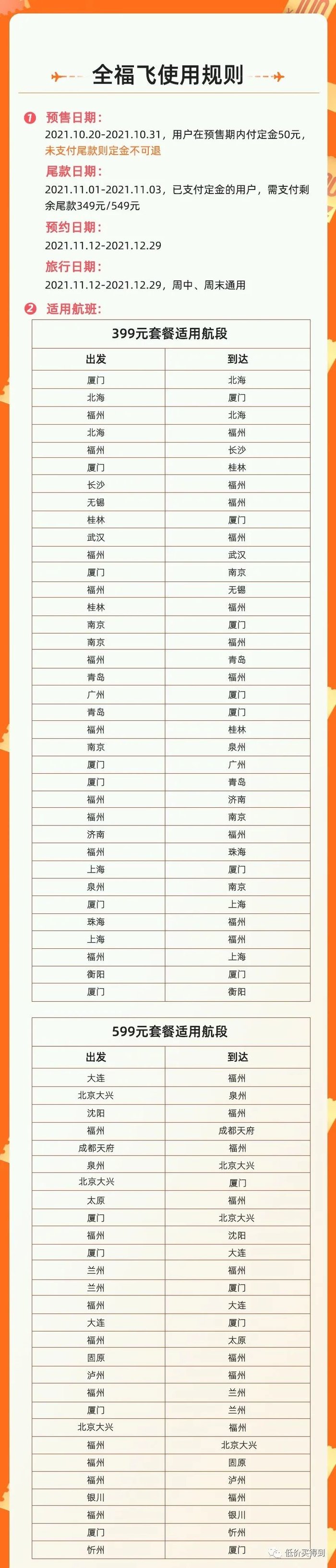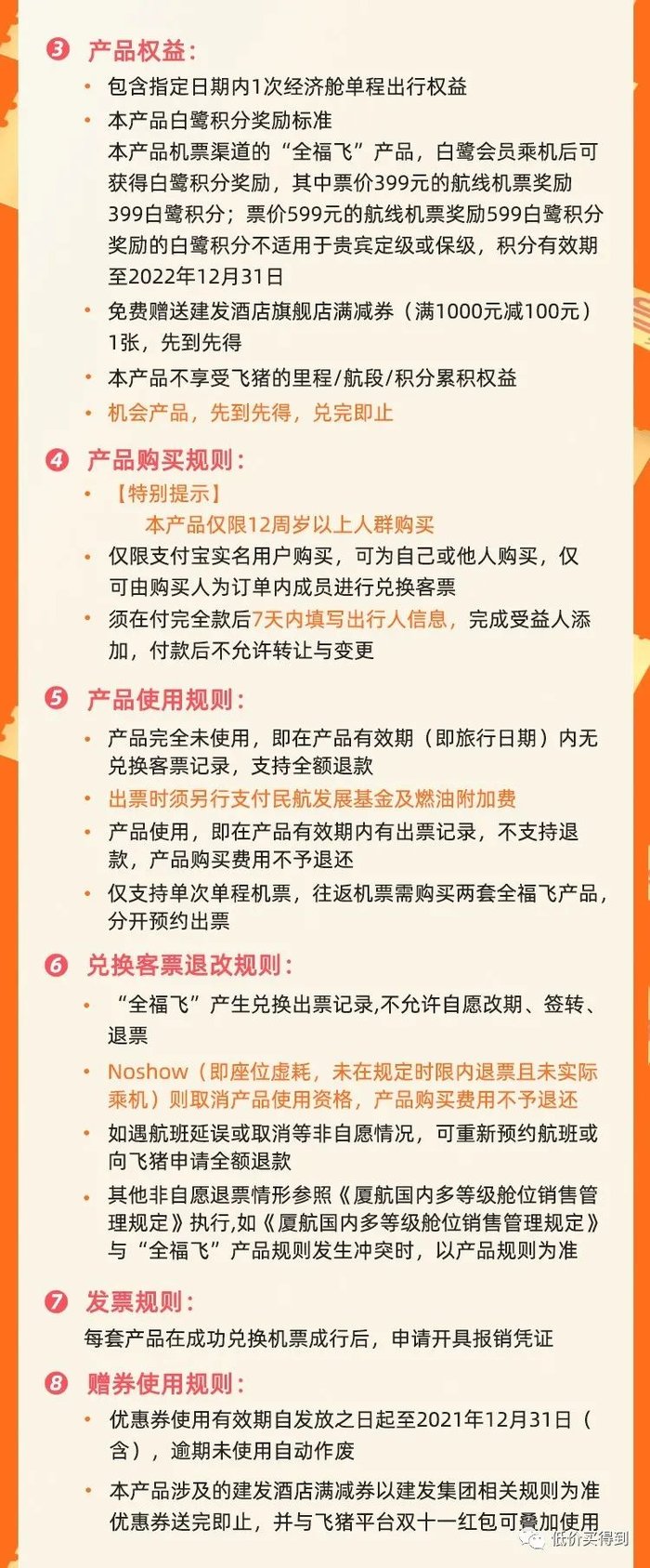 每套全福飞可兑换指定航线范围内,经济舱机票1张,税费另付。根据航线不同,有399元、599元两个价位,未兑换机票可退。